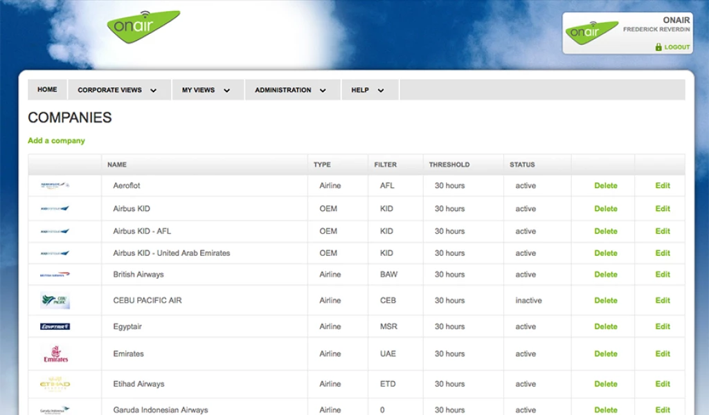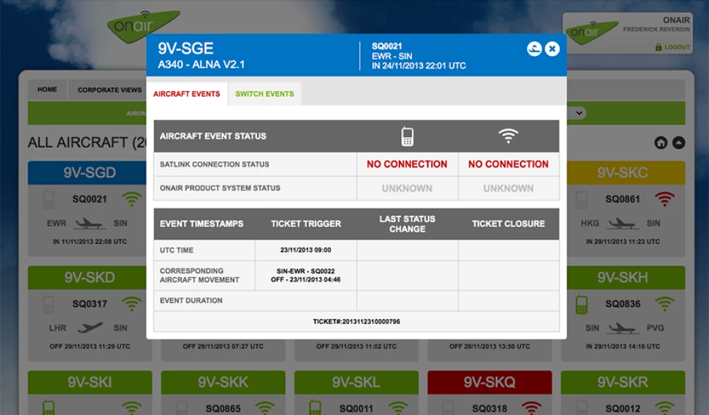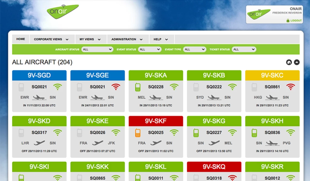 Outil permettant aux clients et partenair de OnAir de consulter en temps réels les états des équipements Wifi et GSM des avions équipés par OnAir. Les compagnies d'aviations peuvent créer des vues et des filtres personnalisées en fonction de l'utilisateur.